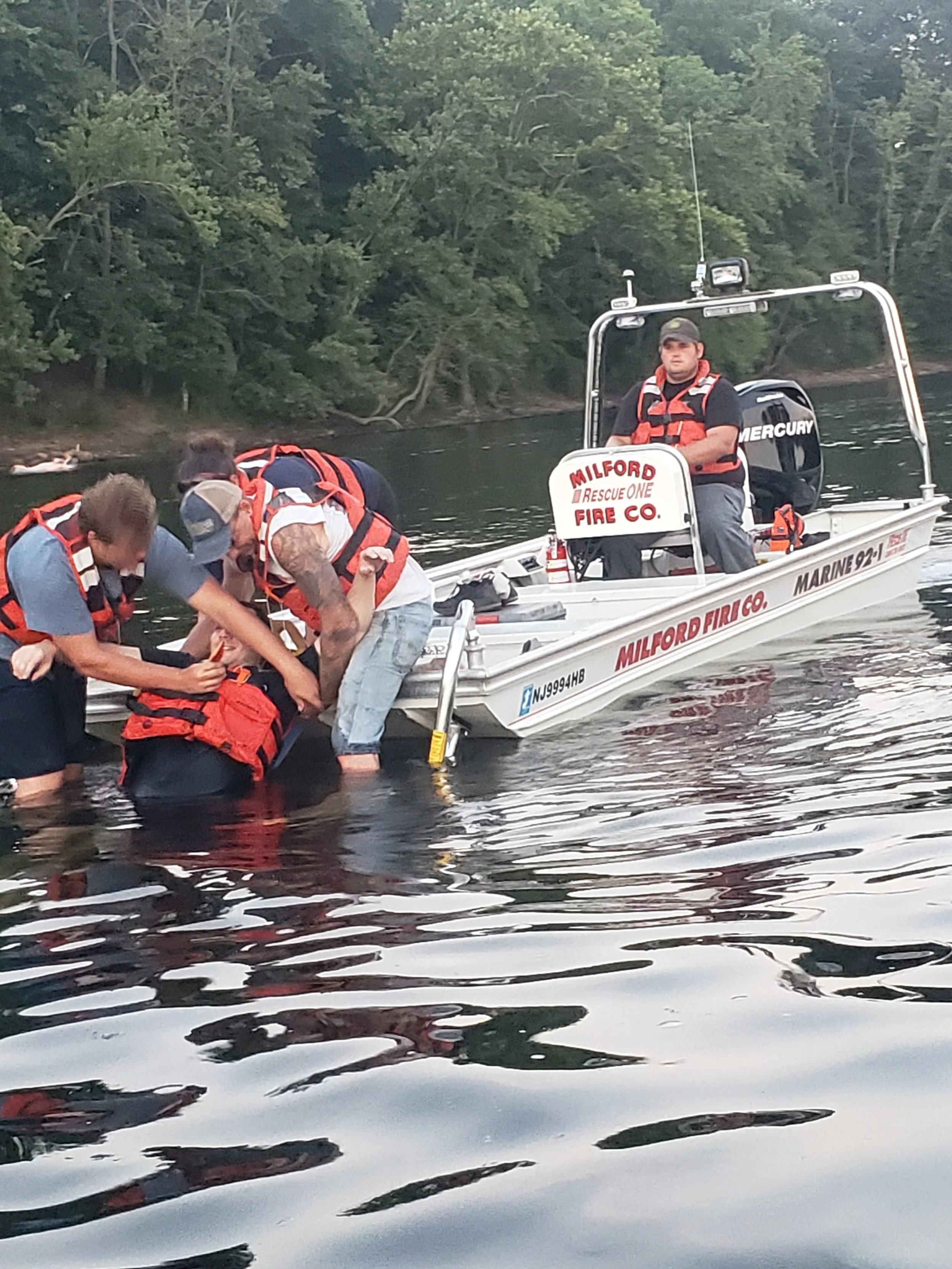 Marine 92 is a 2011 RescueOne Connector Boat. Marine 92 features a flat bottom hull, a 45HP Mercury Jet drive motor and seating for 6, making it a perfect fit for river responses. Marine 92 has the capability to travel in most parts of the river during any season as it only requires 8 inches of water to drive when on plane. M92 also has a 10hp pump capable of putting out fires.